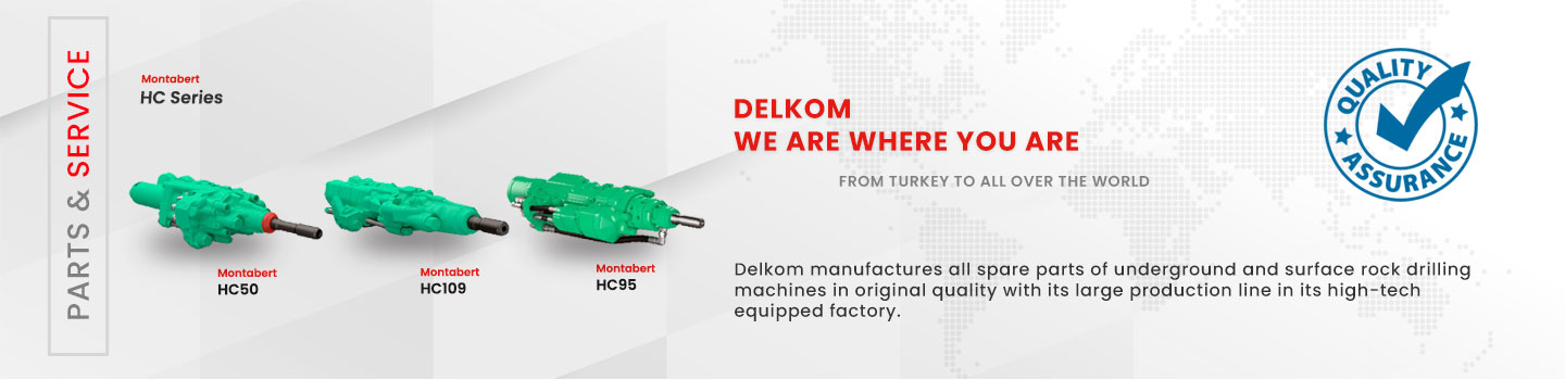 It offers a comprehensive range of spare parts equivalent to those of Ingersoll Rand, Atlas Copco, Epiroc, Mine master, Montabert, Komatsu and Furukawa, as well as drifter spare parts, hydraulic motors and pumps, compressors, filters, gearboxes, transmission reductors, diesel engines, crawler track units and electrical components. Manufacturing durable and high-performance spare parts, Delkom continues to ship worldwide on a daily basis. Delkom maintains a stock of approximately 15,000 spare parts. In addition to its strong warehouse infrastructure that appeals to different sectors, it carries out all periodical maintenance & repair operations in a short time with its experienced and qualified team in line with the demands of its customers.